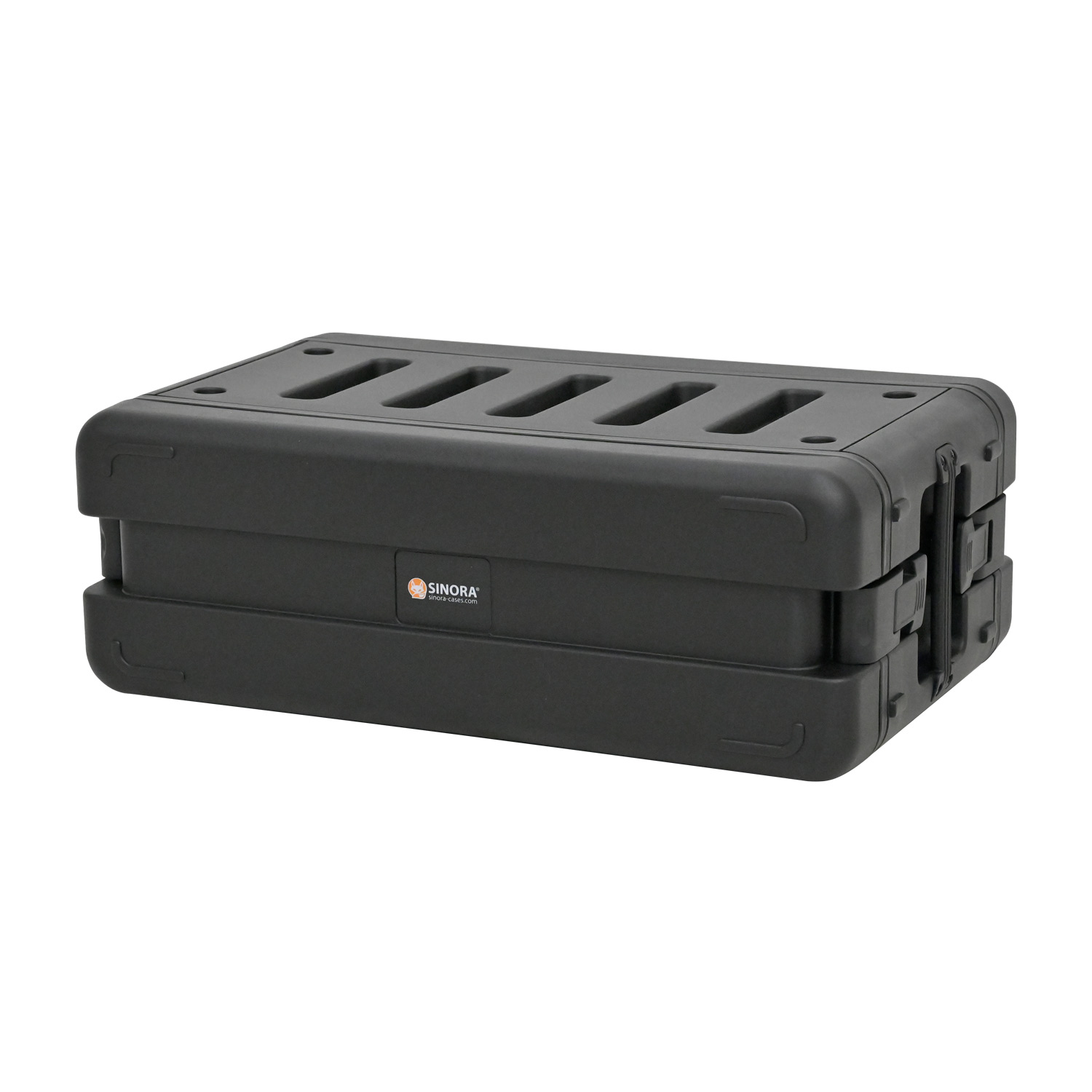 Die SINORA 19-Zoll-Racks aus stoßfestem PP-Kunststoff sind die ideale Lösung für den Transport von 19-Zoll-Geräten in verschiedenen Branchen wie Broadcast, IT, Audio, Messtechnik und vieles mehr. Ihre Stabilität und Leichtigkeit verdanken sie einem innovativen Design und einer hochwertigen Herstellung in Spritzgusstechnik, was für präzise Passgenauigkeit sorgt. Alle Racks verfügen über Stahlrackschienen und werden mit M6 Käfigmuttern geliefert. Dank einer umlaufenden Dichtung im abnehmbaren Kofferdeckel ist Ihr Equipment vor Feuchtigkeit geschützt. Zusätzlich zur Standard-Racktiefe von 458 mm bieten wir auch eine Ultra-Short-Rack-Serie mit einer Tiefe von 190 mm an, ideal für kompakte Geräte. Unsere Trolley-Racks mit ausziehbarem Griff bietet eine neue Dimension an Sicherheit und Komfort für den Transport Ihrer Ausrüstung.